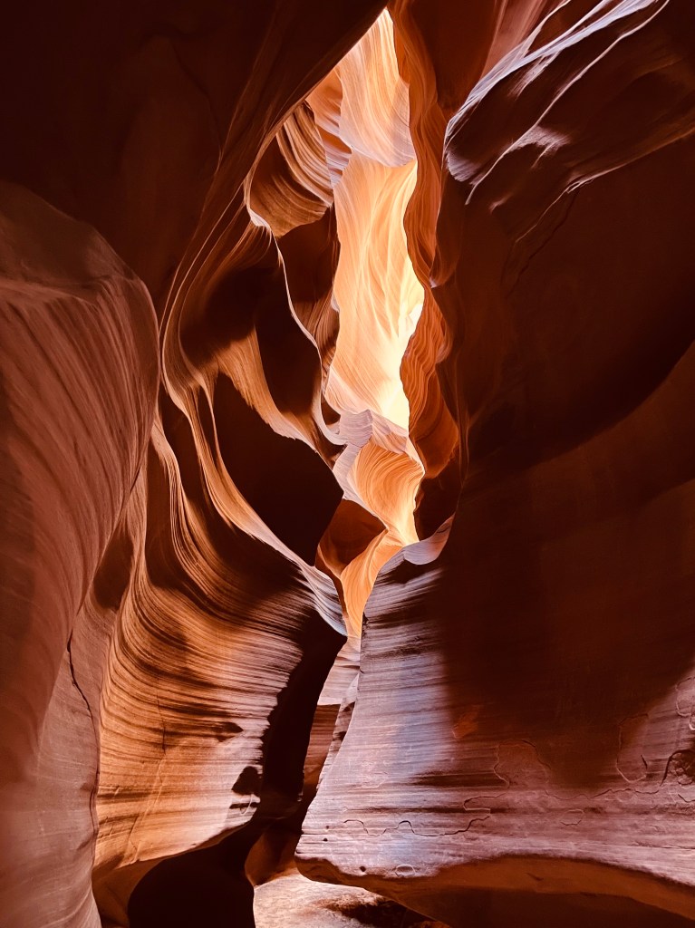 Once I committed to making a pattern, I had to knit up a second piece using my desired yarn (Leading Men Fiber Arts, Diva) and a new color palette. I chose earth-tone oranges as a homage to my recent hiking excursion in Upper Antelope Canyon (a slot canyon in Northern Arizona). We visited in September 2021, and it was amazingly beautiful! The gallery below are some of the photos I took during our guided tour through https://adventurousantelopecanyon.com/. Our tour guide Irene was awesome!